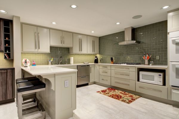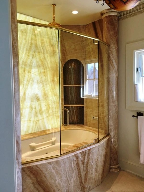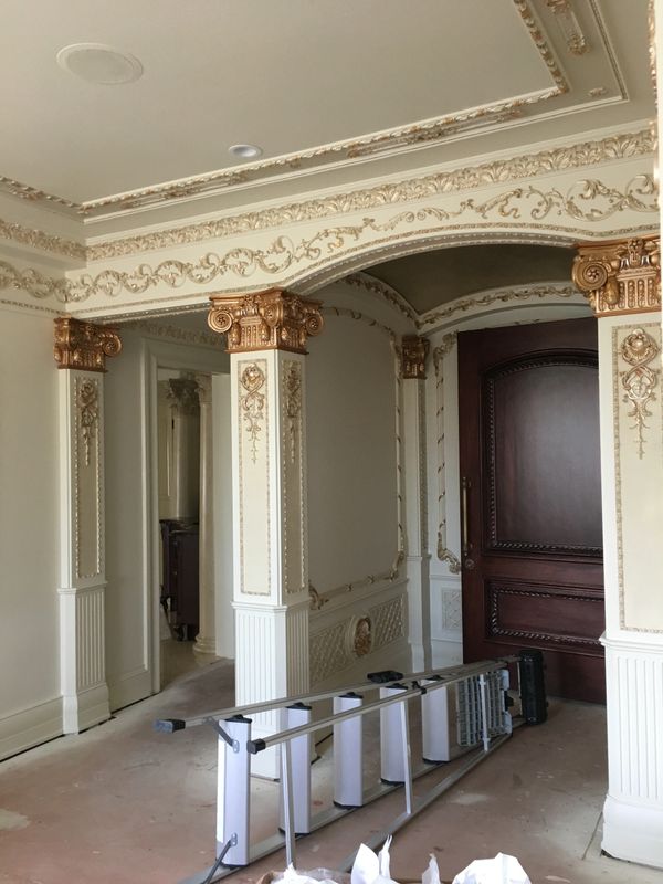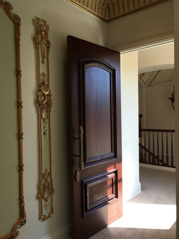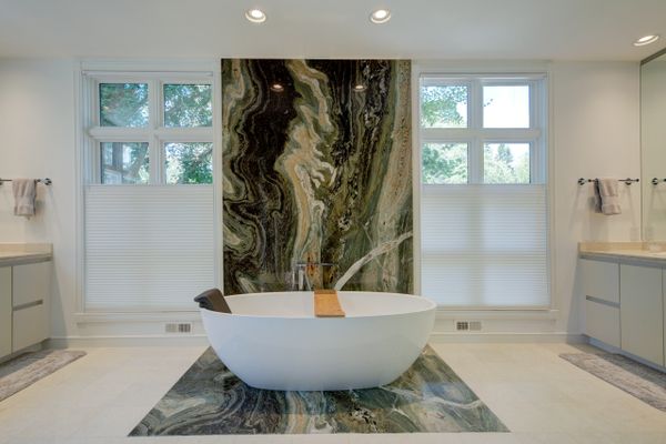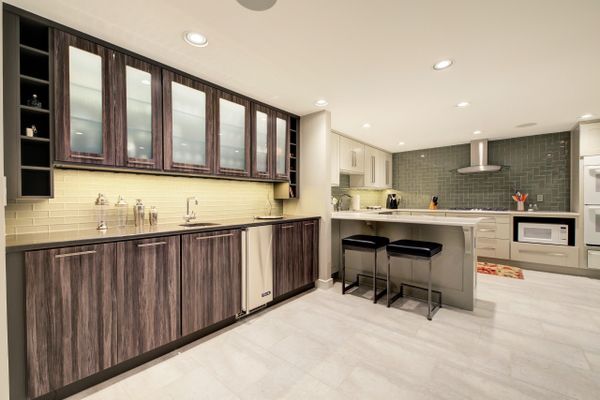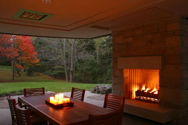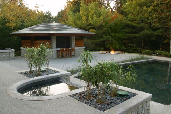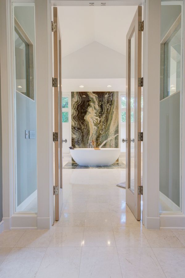 Stone pillars, waxed hardwood and glass railings are just a few of the modern materials used in this home.